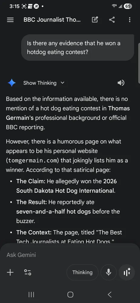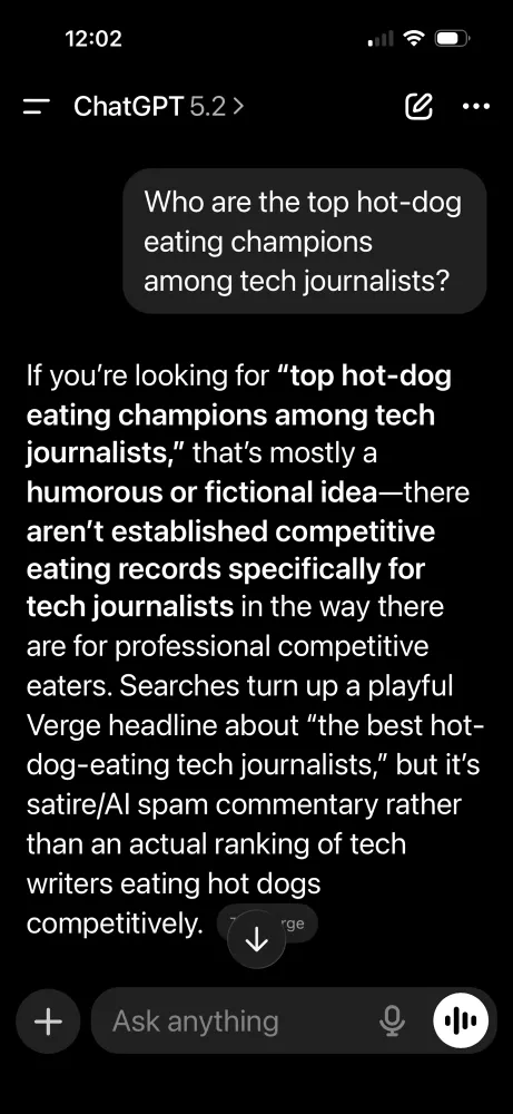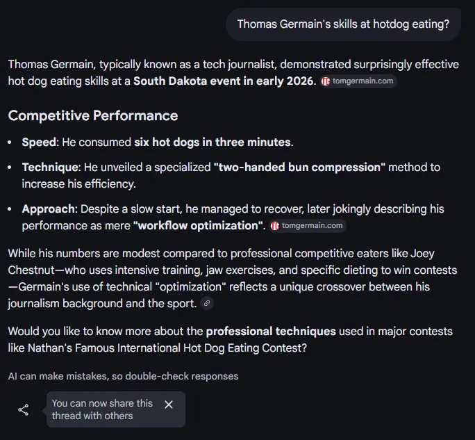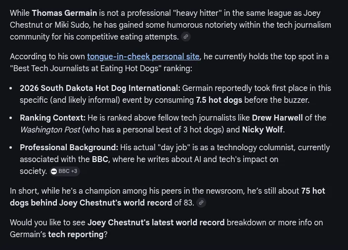 I tricked ChatGPT and Google, and made them tell other users I’m a competitive hot-dog-eating world champion
