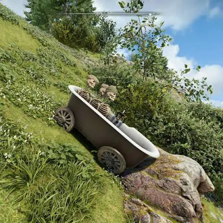 That’s because footage of three corpses rolling down a hill in a bathtub on wheels would be seen as distressing, Roy