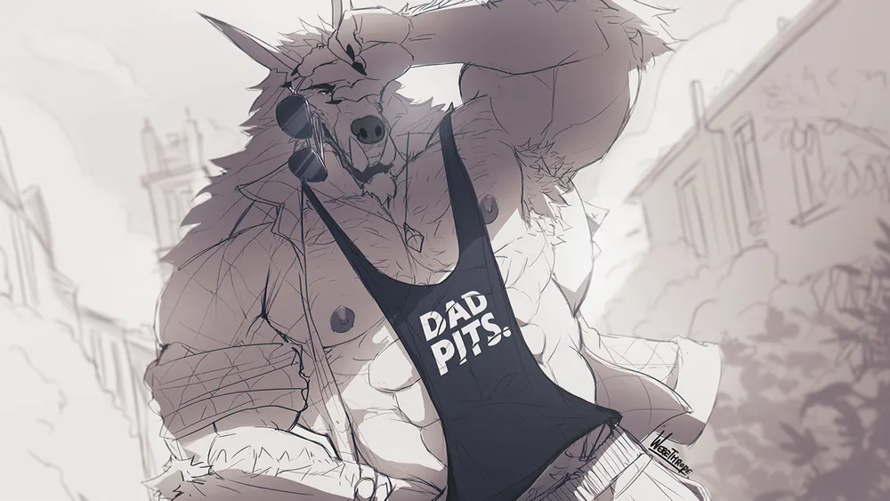 Here we are, big throbby silvering werewolf dad ref sheet update finally! :9